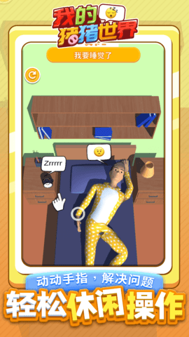 我的猪猪世界是一款独特的剧情类游戏,其主要功能是对各种类型的睡眠姿势进行恶搞研究。玩家可以根据任务的具体要求,体验各种有趣的睡眠姿势,并记录相关数据。这些睡眠姿势既有常见的睡姿,也包括一些创意十足的姿势,让玩家尽情体验睡眠的乐趣。