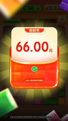 游戏中还有丰富的每日任务和活动,玩家可以通过完成这些任务来获得额外的红包奖励。这些任务通常比较简单,比如消除特定数量的方块或者使用特定的道具完成关卡。完成后,系统会自动将奖励发放到玩家的账户中,玩家可以随时查看自己的收益,并在达到提现条件后进行提现,操作简单方便。