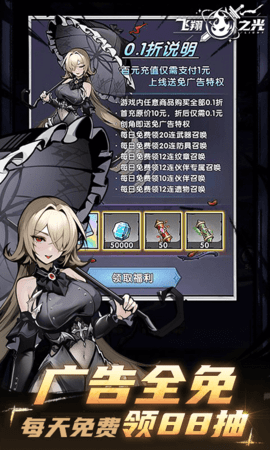 2、上线即送免广告特权+蓝钻*50000+武器召唤券*50+防具召唤券*50