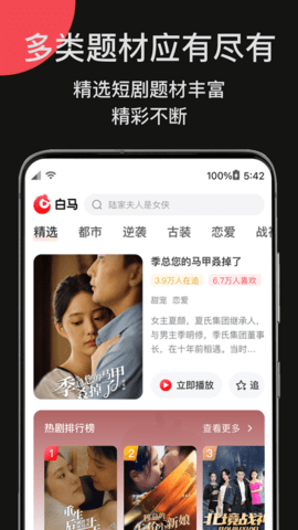 2、白马剧场内置的智能推荐系统能够分析用户的观看历史,提供个性化的短剧推荐,让观剧体验更加贴心。