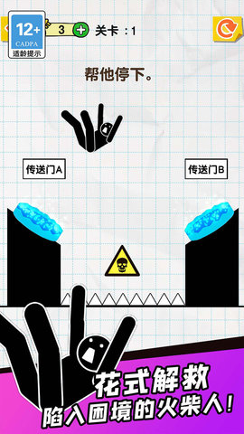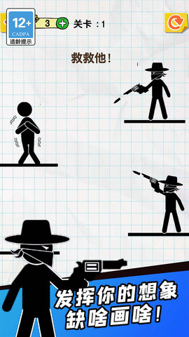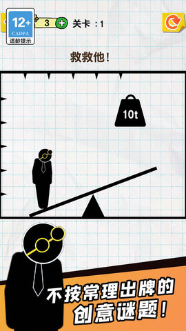 划线机智小能手游戏不仅是一款具有挑战性的益智游戏,更是一场充满创意和乐趣的解谜之旅。玩家将体验到独特的解谜方式和无限可能性,用意想不到的方式帮助火柴人走出困境。快来展现你的聪明才智,挑战各种有趣的关卡,救救这个被困在谜题中的火柴人吧!