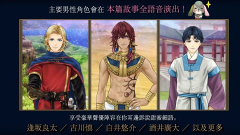 2、与不同历史时代的男性角色互动,通过对话和选择来提升好感度,体验多样化的恋爱关系。