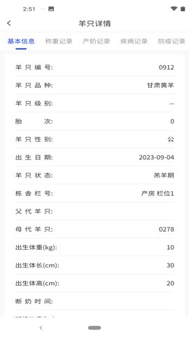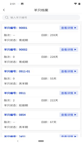 2、档案信息查看,养殖场的牲畜档案数据可以快速查询,用户能够及时了解每只羊的健康和生产信息。