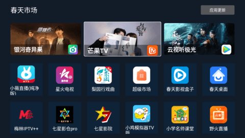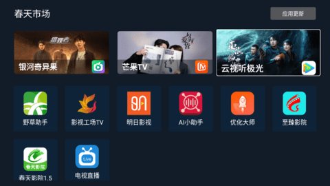 春天市场是一款专为电视用户设计的应用商店,致力于为用户提供丰富多样的应用和游戏资源。无论是想要观看最新的影视剧,还是想要享受游戏带来的乐趣,春天市场都能满足用户的需求。该应用商店收录了近千款经过严格挑选的应用,确保每一位用户都能在这里找到适合自己的内容。无论是家庭娱乐还是个人学习,春天市场都能为用户提供便捷的下载和使用体验。