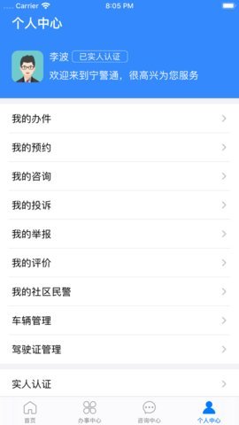 2.业务办理:宁警通提供了多项业务办理功能,包括但不限于身份证办理、出入境办理、户籍办理等,用户可以在线提交申请,进行业务办理。