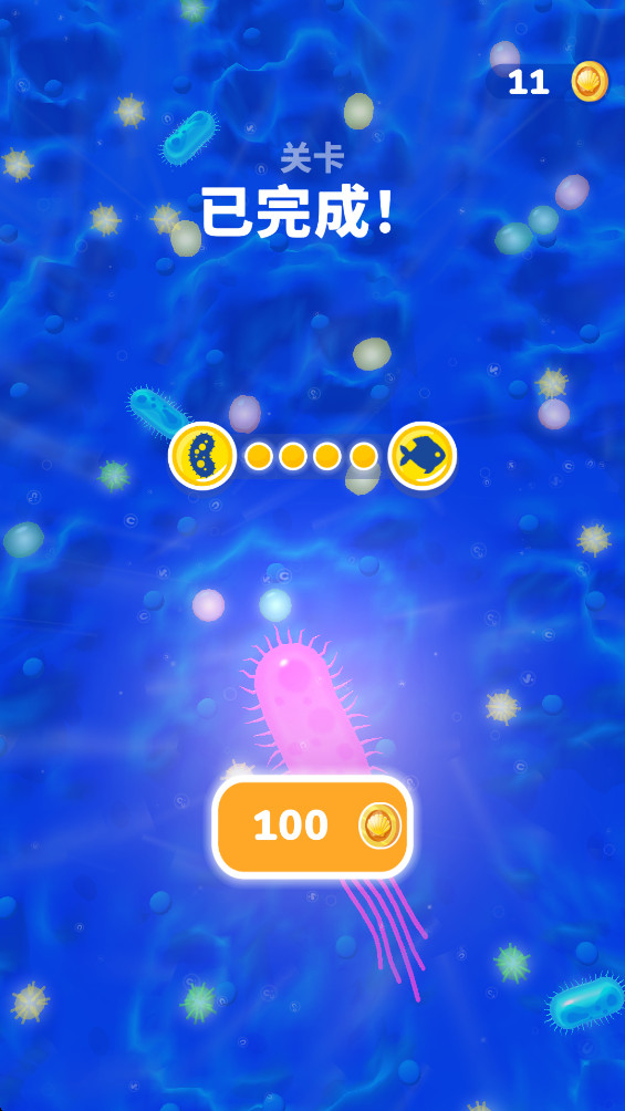 1、游戏保留了生物进化的核心理念,玩家从最基础的细菌开始,通过不断吞噬其他生物获得能量,逐步进化为更复杂的生物。
