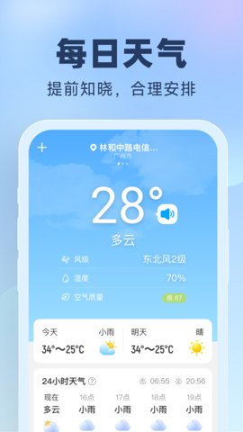 晴雨预报是一款极具实用性的天气预报软件,旨在帮助用户精准掌握天气变化。无论是计划出行还是日常生活,用户都能通过这款软件轻松获取未来几天的气象数据。提供详细的24小时天气变化,还涵盖了台风、雨雪等极端天气的实时信息,让你无论何时何地都能做出明智的决策。