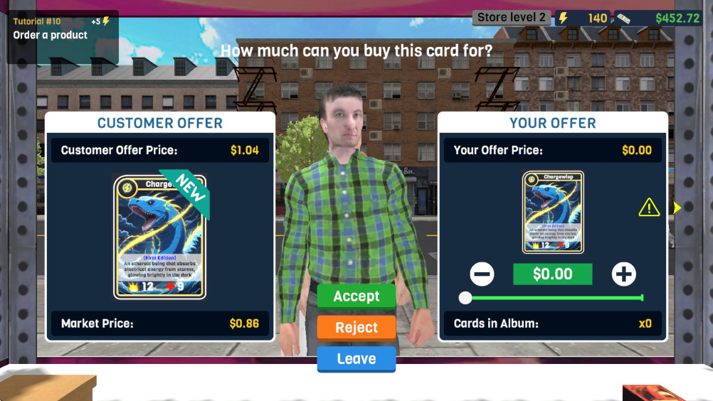 TCG卡店经理是一款将经营与卡牌收集巧妙结合的模拟游戏。在这个充满创意的世界里,玩家将化身为一名卡牌店的经理,负责管理店铺的日常运营以及进行卡牌的采购与销售。游戏的核心在于通过灵活的经营策略和精准的市场判断,吸引更多的卡牌爱好者前来光顾。在不断提升店铺知名度的过程中,举办各种卡牌比赛和特殊活动,进一步增加店铺的曝光度和收入。随着商店的不断发展,玩家将体验到经营的乐趣与挑战。