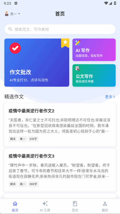 1. 丰富的范文资源让学生可以随时查阅,涵盖从小学到高中各个阶段的优秀作文,帮助他们积累素材,提升写作能力。