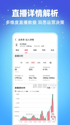 达多多数据分析app是您在电商直播带货路上的得力助手。能让您随时查看直播带货的实时数据,还能通过智能分析帮助您轻松掌握市场动态。无论是新手还是经验丰富的商家,达多多都能为您提供精准的数据支持,帮助您在竞争激烈的电商环境中脱颖而出。超过百万的商家和达人已经选择了达多多,成为了抖音电商直播带货数据服务的先行者,您还在等什么呢?