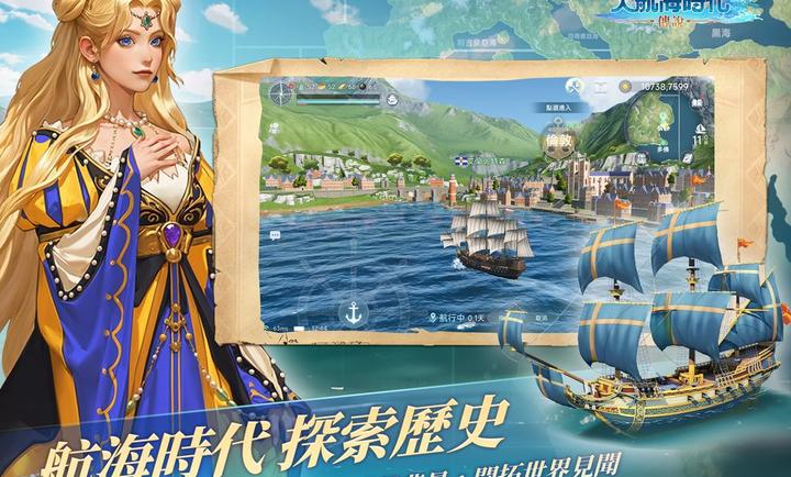 跑商时顺路接取“探险任务”(如发现新港口、遗迹调查),经验与金币双收。