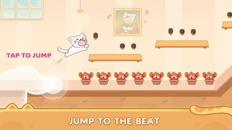 1、游戏内的音乐与喵咪的动作紧密结合,玩家需要根据音乐的节奏来控制喵咪的跳跃,互动让游戏充满了挑战性和乐趣。