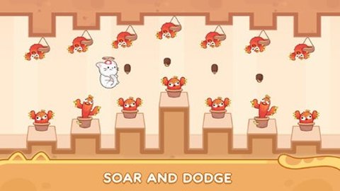 2、通过轻触屏幕,玩家可以让喵咪跳跃,灵活躲避障碍物,避免掉落或碰撞,考验你的反应速度和判断能力。