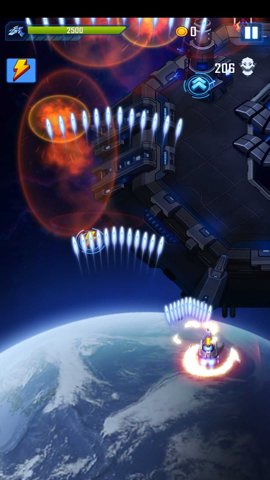 1、你的屏幕将成为你的战场,密集的导弹、激光和子弹将覆盖整个屏幕。