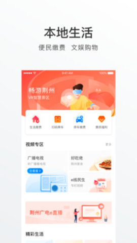 生活服务:提供生活缴费、惠民福利、免税海淘、精彩视频、直播观看以及荆州美图等服务。