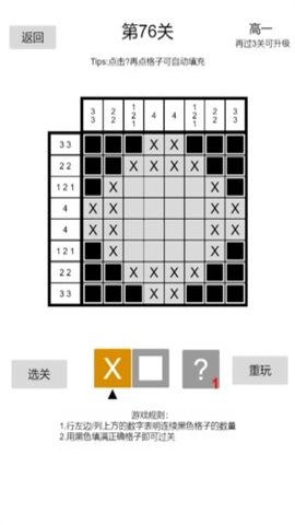1、游戏采用网格形式,玩家需要根据提示数字,推导出每一行和每一列的内容,填入相应的格子。通过方式,逐步揭开谜底,完成图案的呈现。