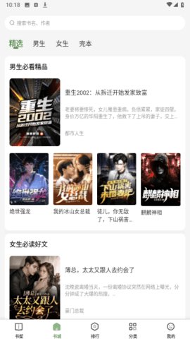 3、小说的分类非常细致,男频和女频的精准划分,让用户能够更快速地找到自己喜欢的类型,节省了寻找的时间。