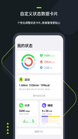 1、数据记录功能,方便地记录每日的活动量、睡眠时长和质量等重要健康数据。