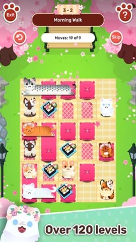 1、游戏设有120个富有挑战性的关卡,玩家需要在每个关卡中运用智慧,合理安排猫咪的位置,完成任务。