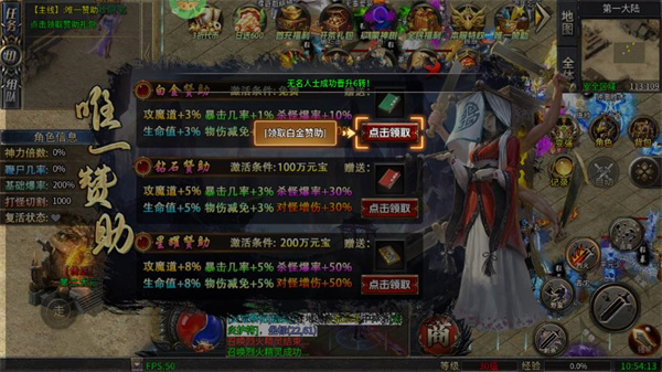 3、复刻了1.85版本框架,新增上百张特色地图与专属装备体系,玩家可选择战士、法师、道士三大职业。