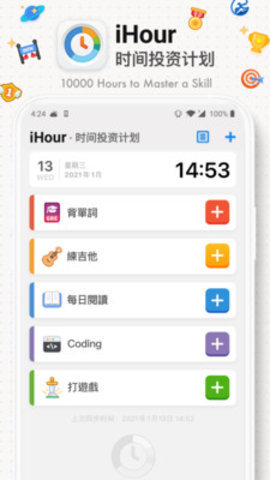 "iHour·时间投资计划"是一款帮助你规划、记录自己时间投入的软件。你可以使用它来记录各种需要时间累积来提高的技能,"背单词多少小时"、"练琴多少小时"、"看书多少小时"、"Coding 多少小时"等等。该应用内置了类似于游戏的成就系统,鼓励用户更好执行任务,让坚持变得更快乐。