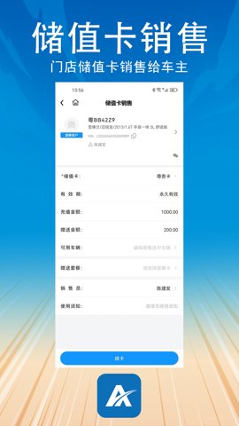 4、储值卡销售功能使得门店可以向车主提供储值卡服务,增加客户的消费频率,提升门店的收益。