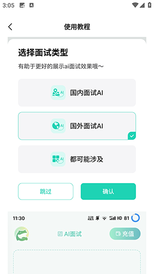4、内置的模拟面试功能让进行自我练习,增强面试技巧与应对能力,提升自信心,帮助他们在真实面试中表现得更加从容。