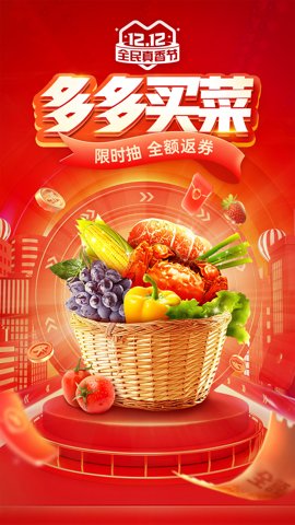 5、拼多多买菜功能经过优化,更方便地购买新鲜的蔬菜和水果,提升了购物的便利性。