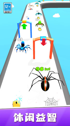 吞就完了是一款以蜘蛛形态为角色的休闲游戏,玩家扮演一只可爱的蜘蛛,需要不断奔跑躲避各种障碍物,并通过接触同等级或低等级的蜘蛛来合成更加强大的角色。游戏设定了多样化的挑战和障碍,玩家需要灵活应对,适时躲避,还要通过合成进化蜘蛛来提升自身实力,以便更好地战胜各种阻碍。这种不断提升和挑战的玩法,让玩家可以不断突破自我,刷新记录,体验到成就感和乐趣。