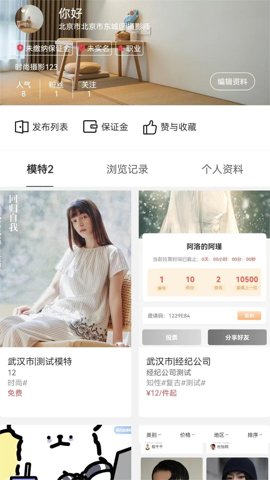 1、模特搜索,根据不同的需求和条件搜索模特,快速找到合适的合作对象。