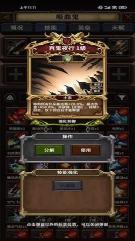 1、技能是游戏中英雄输出的核心组件,玩家可以从近200种技能中自由选择10种进行关卡战斗,不同种族的英雄在技能派系上有所差异,增加了策略性。