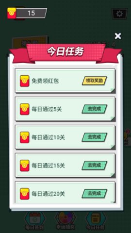 在《我来猜金币》中,玩家的主要任务是回答问题。游戏开始后,玩家会看到一系列的问题,每个问题都有多个选项。玩家需要在限定的时间内选择正确的答案。答对的题目越多,获得的红包奖励也就越丰厚。游戏的节奏紧凑,玩家需要快速思考,才能在时间内完成更多的题目。