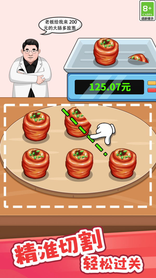 游戏的切割机制十分独特,玩家不仅需要掌握切割技巧,还要考虑顾客的需求和时间限制,增加了游戏的策略性和趣味性。