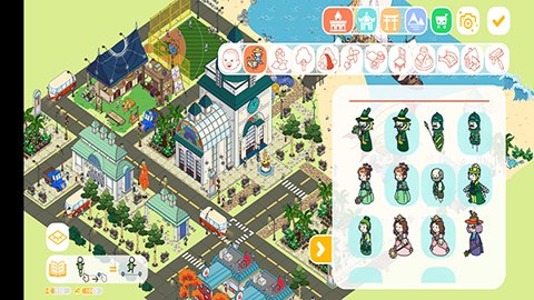 2、角色和建筑的选择极为丰富,接近5000种角色、建筑和道具可供自由组合,玩家可以根据自己的想法创造出独特的城市风景。