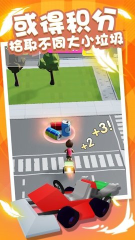 2、在城市中,玩家可以尽情地捡垃圾,捡得越多,车辆就会变得越豪华。