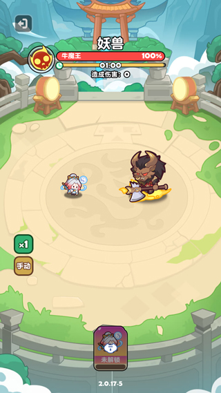3、进入游戏如图,跟随引导点击妖兽开始挑战;
