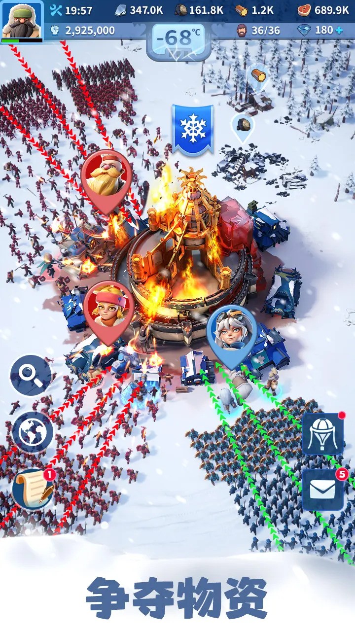 无尽冬日的背景设定在一个被冰雪覆盖的末日世界,玩家需要面对资源匮乏与环境恶劣的双重挑战。游戏的主要系统围绕幸存者的招募与管理展开,玩家需要合理分配资源,确保城镇的持续发展。通过不断收集木材、食物等基本资源,建造不同功能的建筑,厨房和采集站,来满足幸存者的基本需求。游戏还引入了英雄系统,提升英雄的技能与星级,增加了战斗与探险的策略性,使得每一次外出探索都充满未知与挑战。