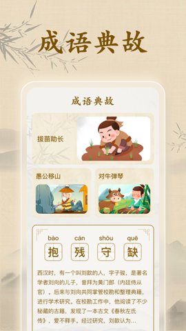 3、每个成语都附有详细的释义和典故,让用户在学习过程中能够更深入地理解成语的来源与含义。