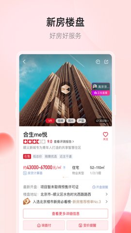 1、通过应用浏览到各个城市的新房项目,了解到项目的规划、建设进度等信息,为您的购房决策提供参考。