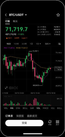 行情图表区:显示主要数字货币的价格走势图,可查看实时价格、成交量、涨跌幅等信息,还能切换不间周期和图表类型。