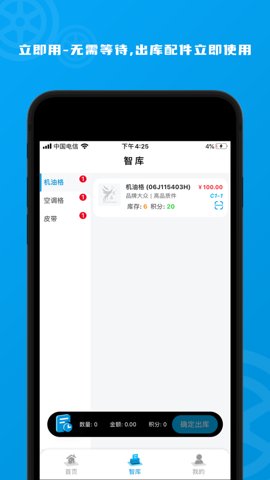 4、修理厂可在智库中设置库存,确保在有配件需求时能够迅速出库,解决临时需求问题。