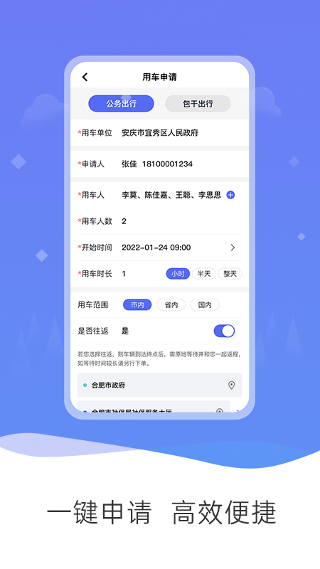 公务和行手机版是合肥和行科技有限公司为政府客户量身打造的一款基层公务用车调度管理平台。这款软件的目标是为政府提供一个安全、规范、高效和便捷的公务用车信息化解决方案。通过这款软件,轻松完成用车申请、审批、调度派车以及还车确认等一系列操作,极大地提升了公务用车的管理效率,确保了公务出行的顺畅与安全。