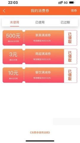 1、通过软件领取到多种类型的消费券,涵盖家电、家具、商超和餐饮等多个场景,满足不同消费者的需求。