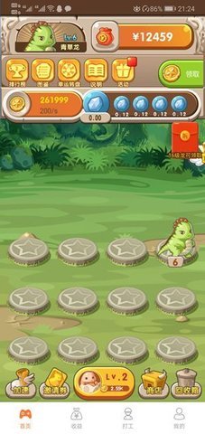 恐龙有钱红包版是一款放置类休闲赚钱小游戏,游戏音效清新,画面舒适,玩家需要小心饲养小恐龙,帮助它们快速成长。玩家可以通过多种方式赚钱。玩家可以通过累计登录游戏获得红包奖励,培育和合成恐龙的先进品种可以获得可观的利润。邀请朋友加入游戏也有很多好处。