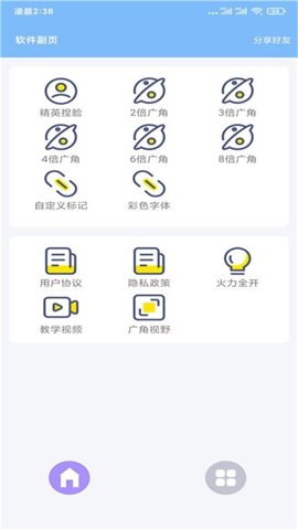 超广角大师是一款功能强大的应用软件,能够提供超广角视野微体积的效果。这款软件内置了多种强大的功能,包括160大广角、170大广角、彩色字体、自定义标记等。它还支持帧率与功能的一键应用,让你能够获得更多方位的视角。