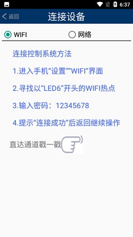 请检查手机的WIFI设置,确保已连接到正确的LED控制卡的WIFI网络,并输入正确的密码进行连接。