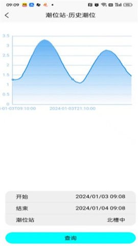 3、如需查看特定的潮汐信息,您可以在查询界面选择日期和时间,系统会显示相应的潮汐情况。