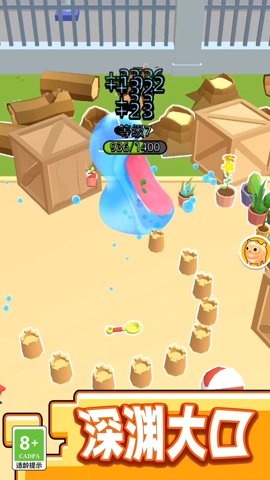 4、游戏的初期,玩家从一个小巧可爱的史莱姆开始,只能吃一些微小的物体,需要小心不要被更大的物体吃掉。