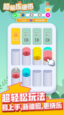玩家需要灵活运用空槽的特性,合理安排筹码的叠放顺序。通过合成更高级别的筹码和利用空槽的技巧,玩家可以更高效地整理槽位,提升游戏得分。玩家需要注意控制派发筹码的时机,避免槽位过度混乱。超解压硬币游戏不仅考验玩家的逻辑思维和合成能力,还能激发玩家对策略规划的兴趣,是一款富有挑战性和乐趣的休闲解谜游戏。