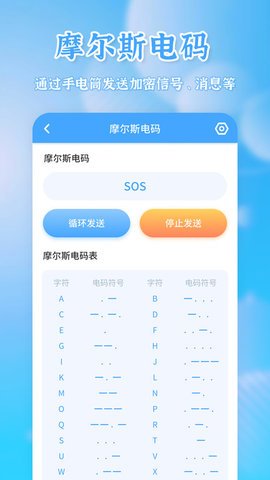 1、摩尔斯电码功能让用户能够通过手电筒灯光发送信号,这在特殊情况下可以成为一种有效的沟通方式。